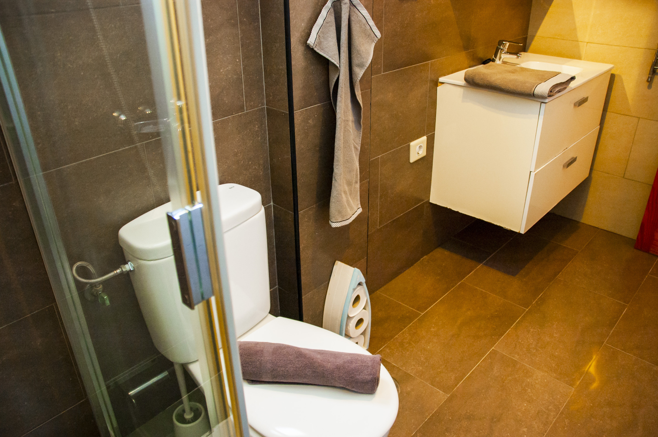 El apartamento cuenta con dos dormitorios bien distribuidos: un dormitorio principal con cama matrimonial y otro con dos camas individuales, garantizando un descanso cómodo para todos los huéspedes. Dispone de un único cuarto de baño con ducha, completamente equipado para tu comodidad.