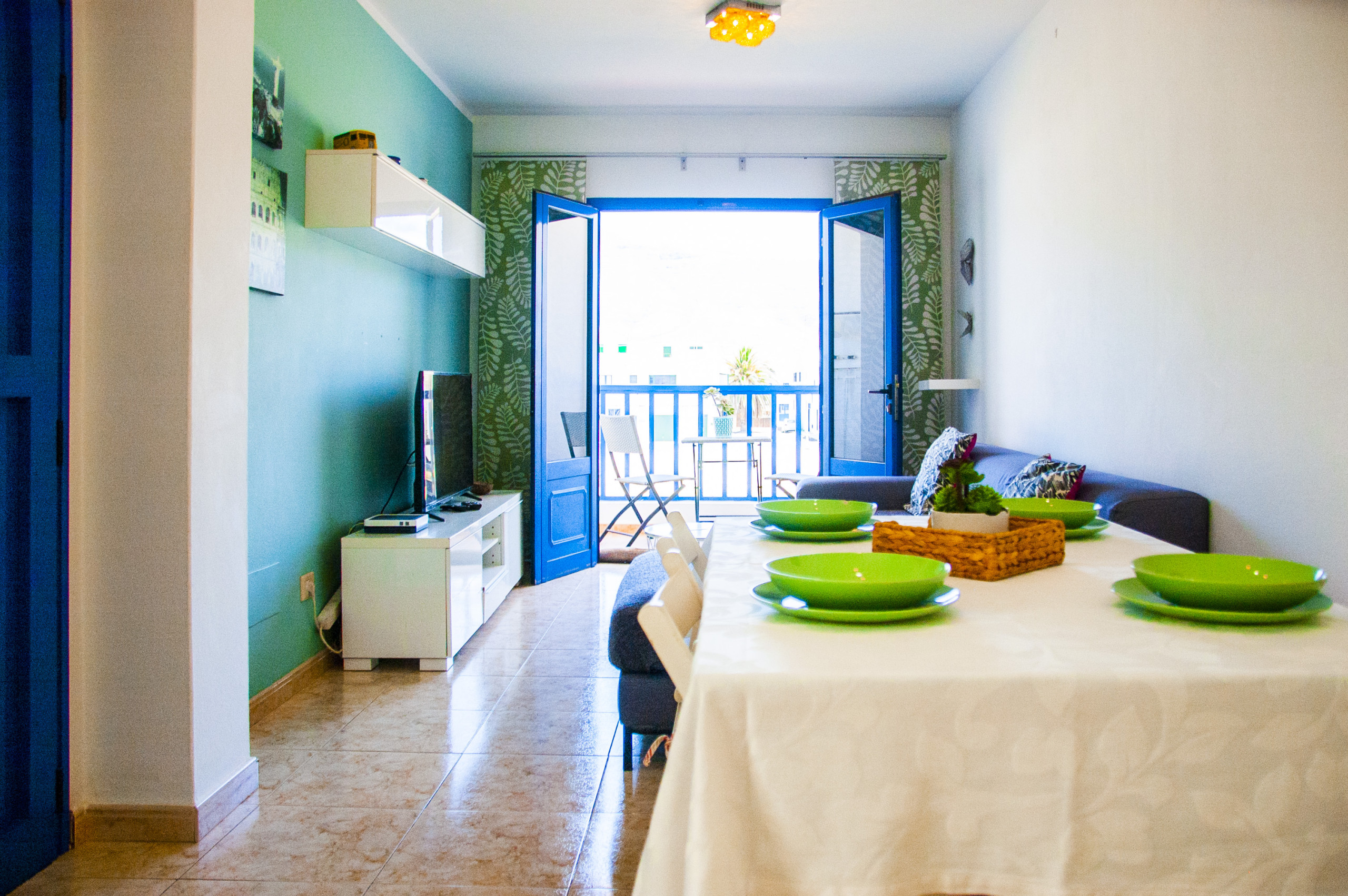 El apartamento dispone de un balcón donde podrás disfrutar de las impresionantes vistas de Famara. Es perfecto para grupos de jóvenes, aunque no se permiten mascotas ni fumar en el interior.