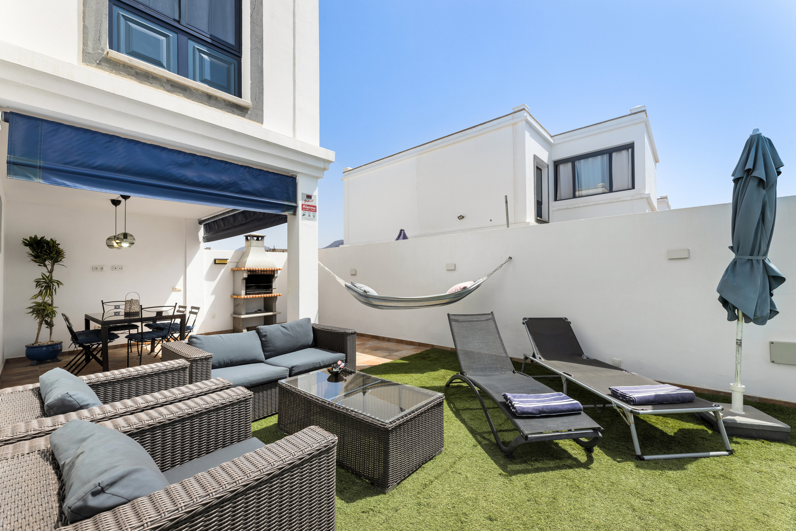 y cuenta con barbacoa. Se requiere coche. El aeropuerto de Lanzarote está a 40 minutos
