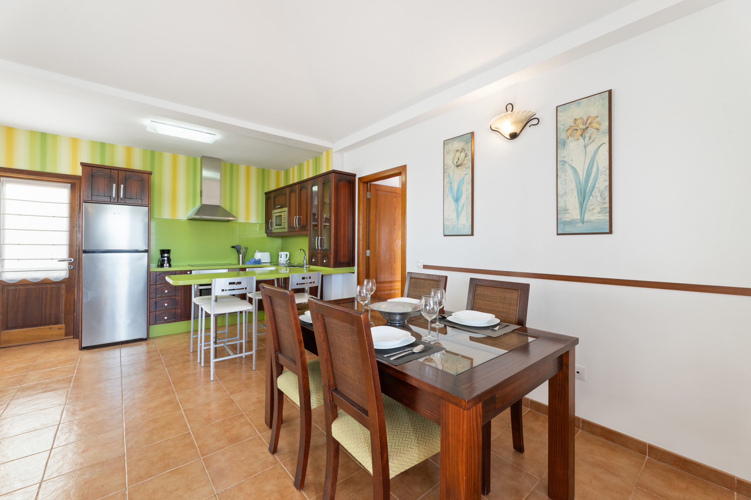 Die Offene Küche ist ausgestattet in einen Kühlschrank, eine Mikrowelle, ein Backofen, Gefrierschrank, Geschirr/Besteck, Kochutensilien, eine Kaffeemaschine, einen Toaster, einen Wasserkocher und eine Saftpresse.