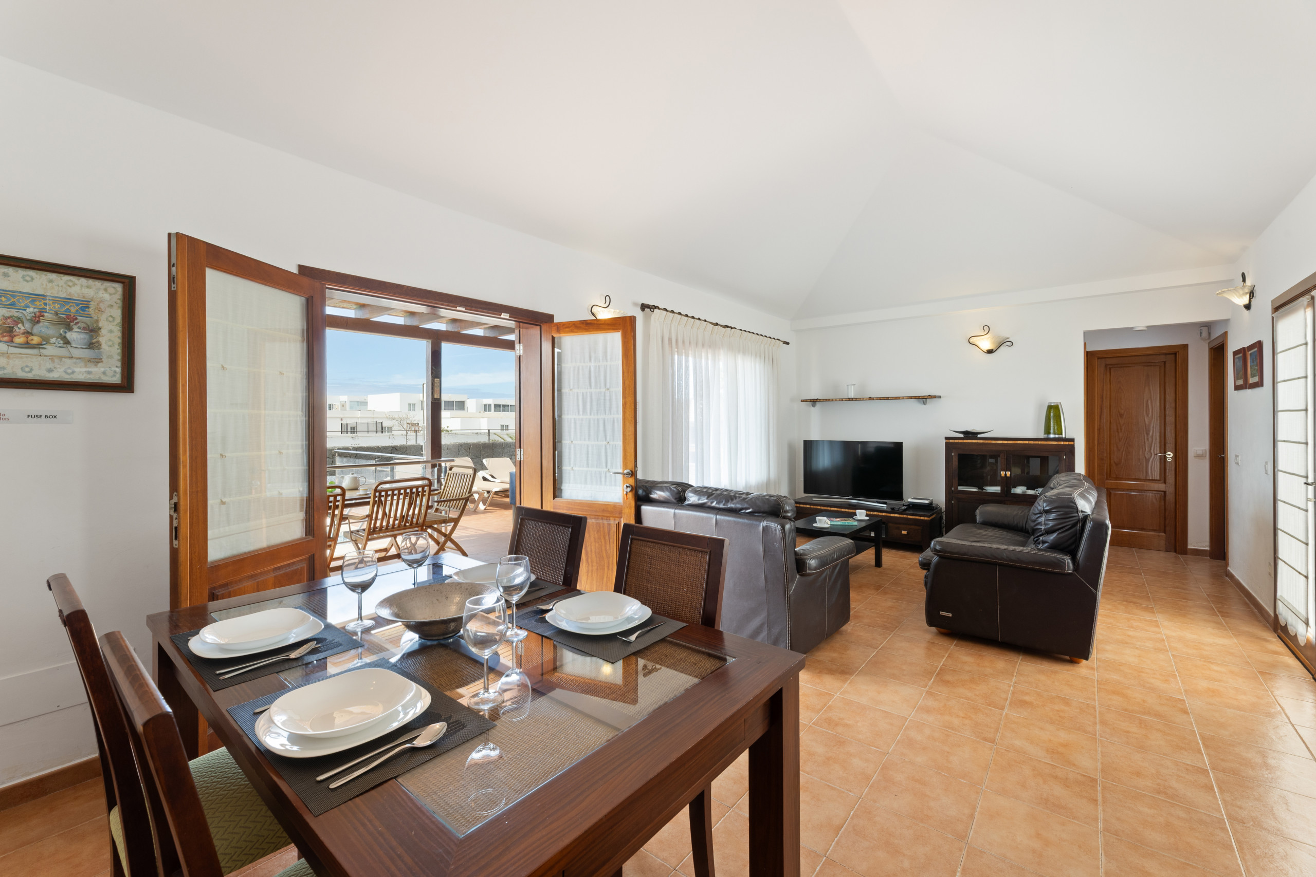 The villa in Playa Blanca has 3 bedrooms and has capacity for 6 people. The villa is 109 m². The property is located 700 m from Playa de las Coloradas sand beach, 700 m from Casa Carlos the restaurant, 750 m from La Cocina de Colacho the restaurant, 900 m from Paulo's Bar coffee shop, 2 km from Playa Mujeres sand beach, 2 km from Playa Dorada sand beach, 10 km from Parque Naional de Timanfaya nature reserve, 30 km from Aeropuerto César Manrique-Lanzarote international airport, 30 km from Aeropuerto César Manrique-Lanzarote airport.The accommodation is equipped with the following items: terrace, washing machine, barbecue, iron, safe, internet (Wi-Fi), hair dryer, air-conditioned, private heated swimming pool, TV.In the open plan kitchen, refrigerator, microwave, oven, freezer, dishes/cutlery, kitchen utensils, coffee machine, toaster, kettle and juicer are provided.
