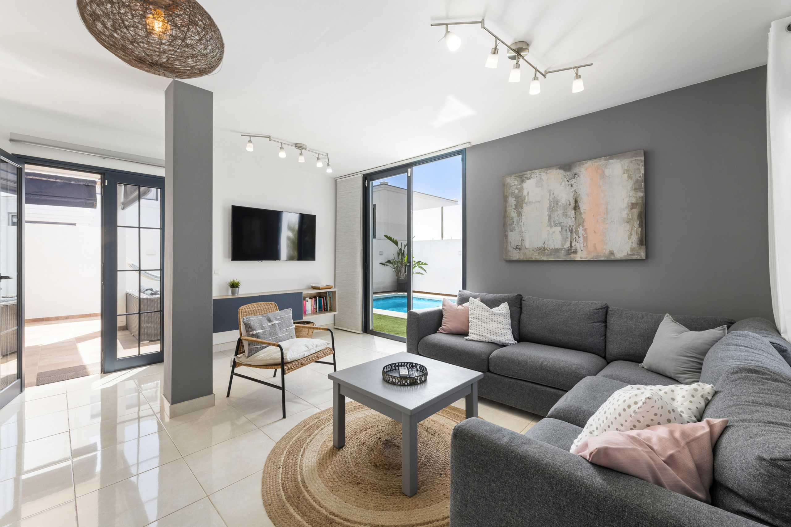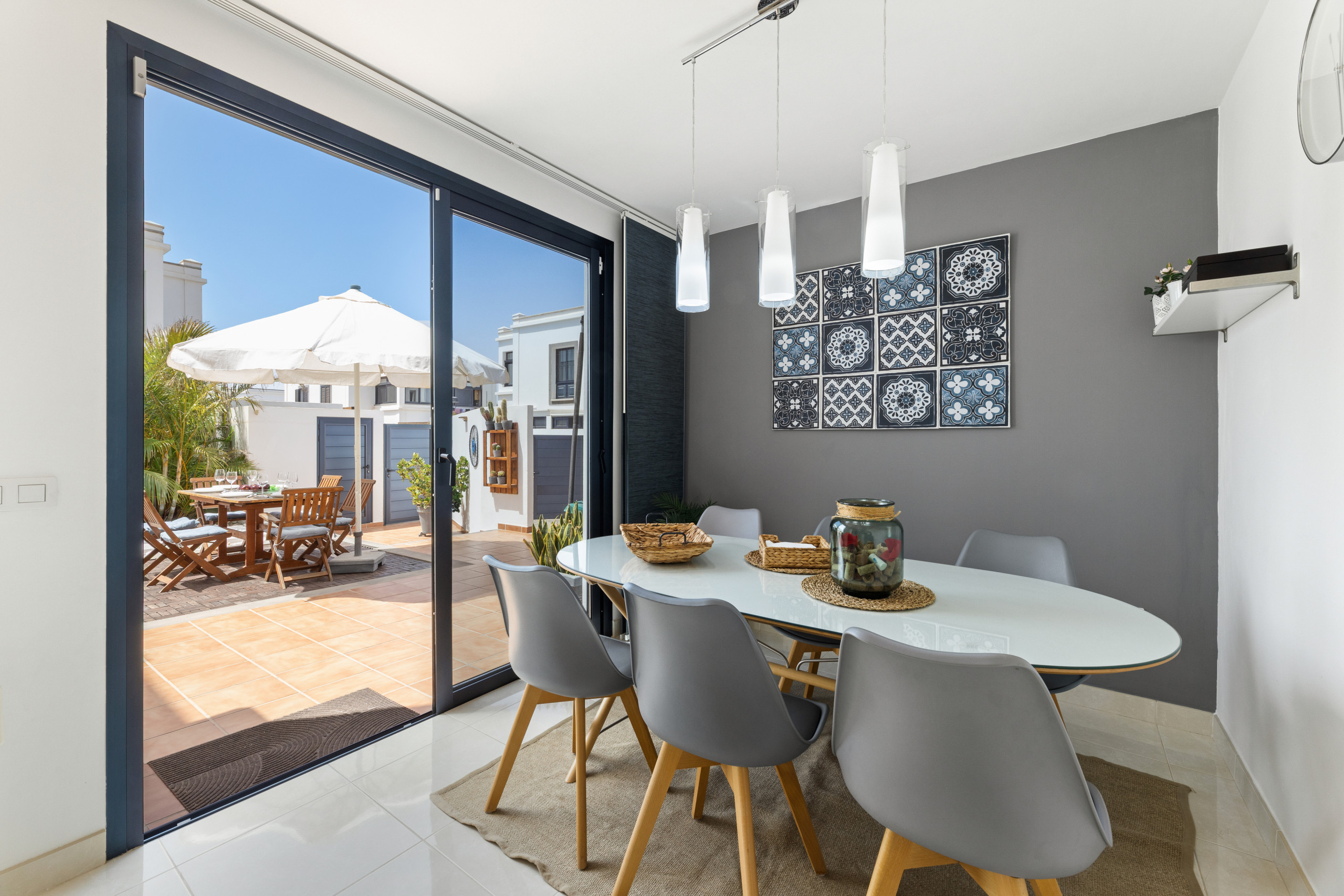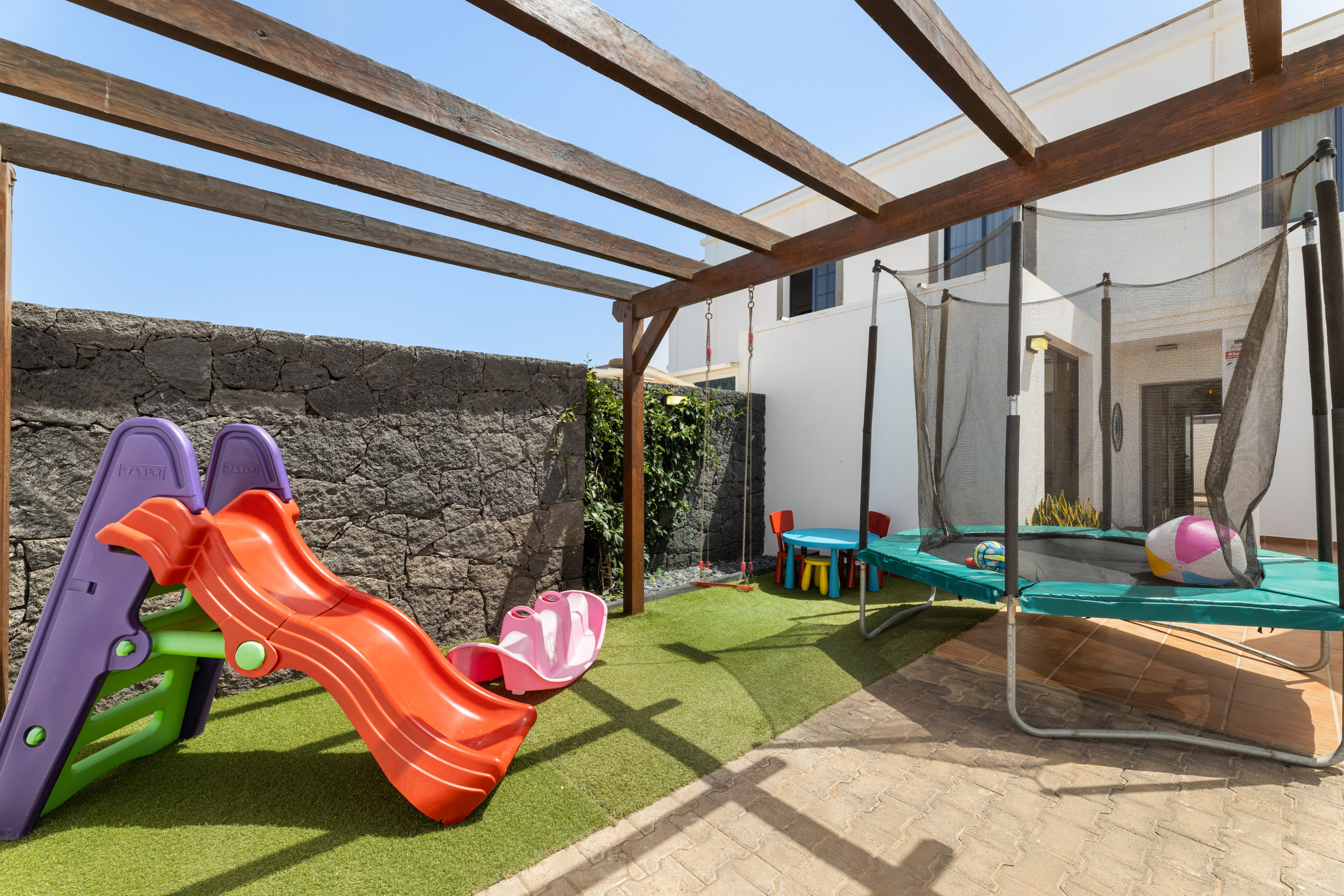 La villa à Playa Blanca dispose de 3 chambres et peut accueillir 6 personnes. Logement de 117 m² beau et entièrement équipé, avec vue sur le jardin et la piscine. Situé à 1 km de la plage de sable "Playa de la Campana", à 2 km de la plage de sable "Playa Flamingo", à 2 km de la plage de sable "Playa de Montaña Roja", à 2 km de la plage de sable "Playa Dorada", à 16 km du parc naturel "Parc National de Timanfaya", à 23 km de l'aéroport "Aéroport César Manrique" et situé dans une zone calme et dans un complexe résidentiel.Dispose d'un jardin, de mobilier de jardin, de parcelle clôturée, de 31 m² de terrasse, de lave-linge, de barbecue, de fer à repasser, de coffre-fort, d'accès internet (wifi), de sèche-cheveux, de climatisation, de piscine privée chauffée, de parking en plein air dans le même bâtiment, 1 téléviseur, télévision satellite.La cuisine est équipée de réfrigérateur, micro-ondes, four, congélateur, lave-vaisselle, vaisselle/couverts, ustensiles/cuisine, cafetière, grille-pain et bouilloire.