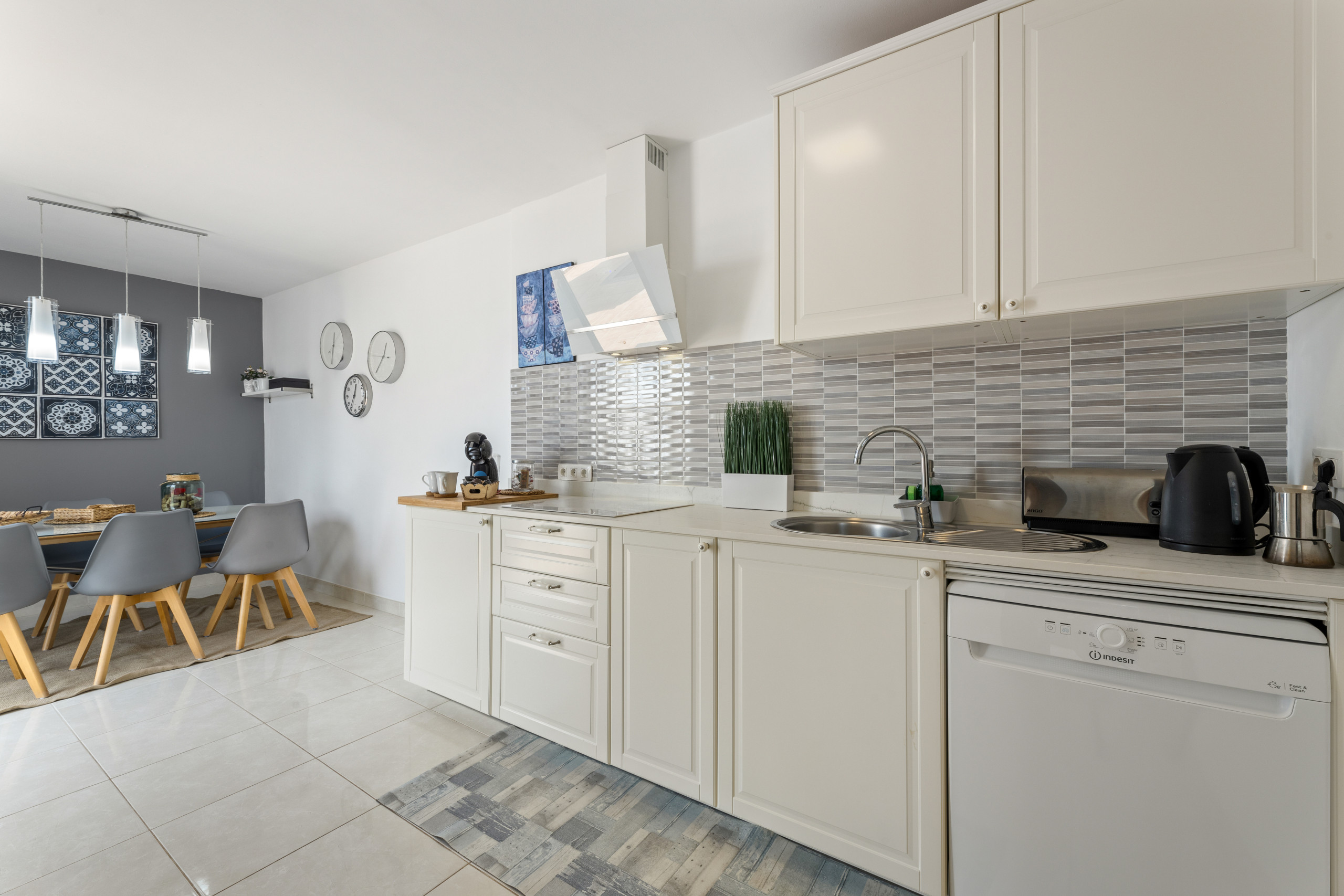 A cozinha é independente, está equipada com frigorífico, microondas, forno, congelador, máquina de lavar louça, louça/talheres, utensílios/cozinha, máquina de café, torradeira, jarro eléctrico e máquina de sumos.