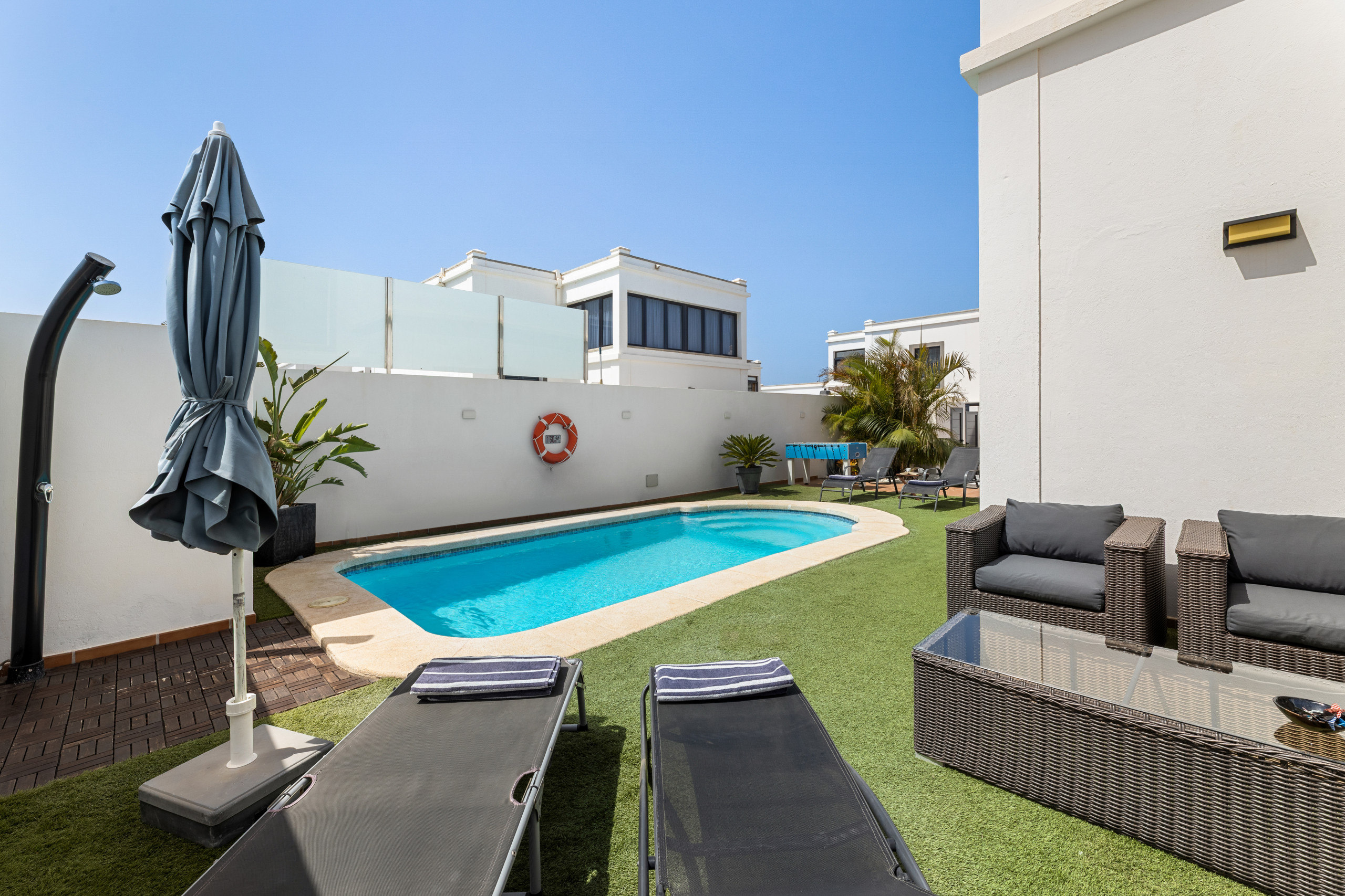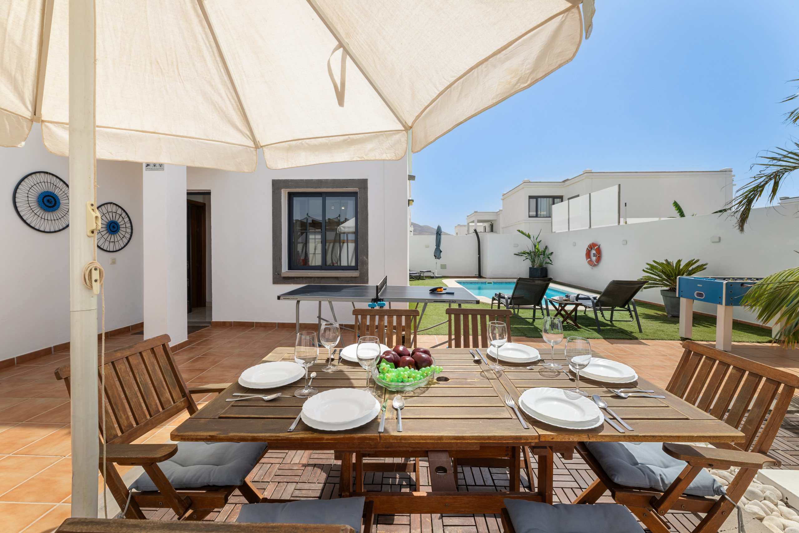 Villa Zafiro 17: encontra-se a apenas 150 metros do mar, é um duplex espaçoso com piscina privada que pode ser aquecida por um suplemento. A villa é luminosa e dispõe de zona de sala de estar com sofá e TV de ecrã plano. A cozinha completa está equipada com frigorífico, forno, placa vitrocerâmica, máquina de lavar louça e micro-ondas. A villa tem uma varanda com máquina de lavar roupa e utensílios de passar a ferro. Também tem uma varanda com espreguiçadeiras e conta com churrasqueira. É necessário carro. O aeroporto de Lanzarote está a 40 minutos de carro.